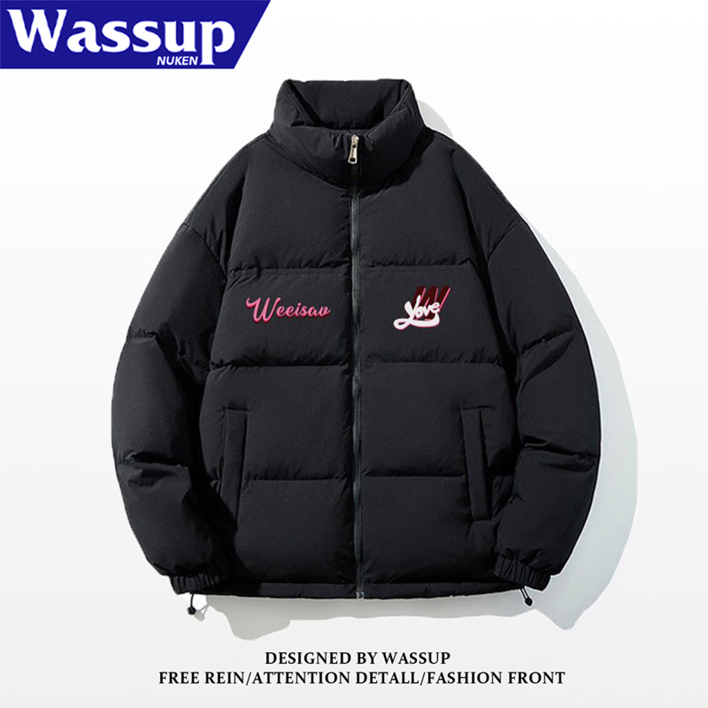 复古黑色轻薄90白鸭绒青少年外套 冬季 WASSUP美式 高街羽绒服男女款