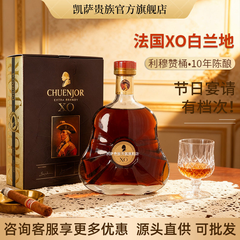 凯萨贵族白兰地XO洋酒正品 3L礼盒法国进口40度烈酒XO白兰地 700ml