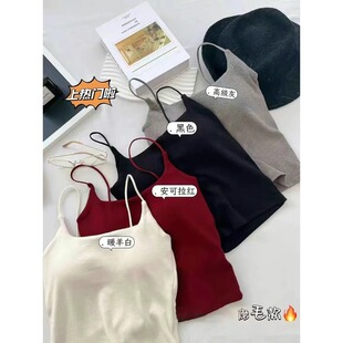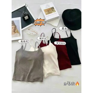 安可拉红色绝美修身 小吊带背心女内搭美背文胸一体带胸垫磨毛上衣