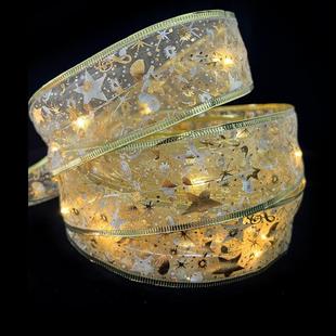 饰挂件圣诞球烫金灯带彩带 饰品圣诞树装 圣诞丝带LED灯串 圣诞节装