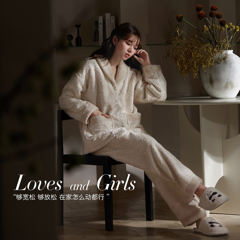 可外穿 冬季 WildRooms2026年马年新款 保暖家居服女半边绒睡衣套装