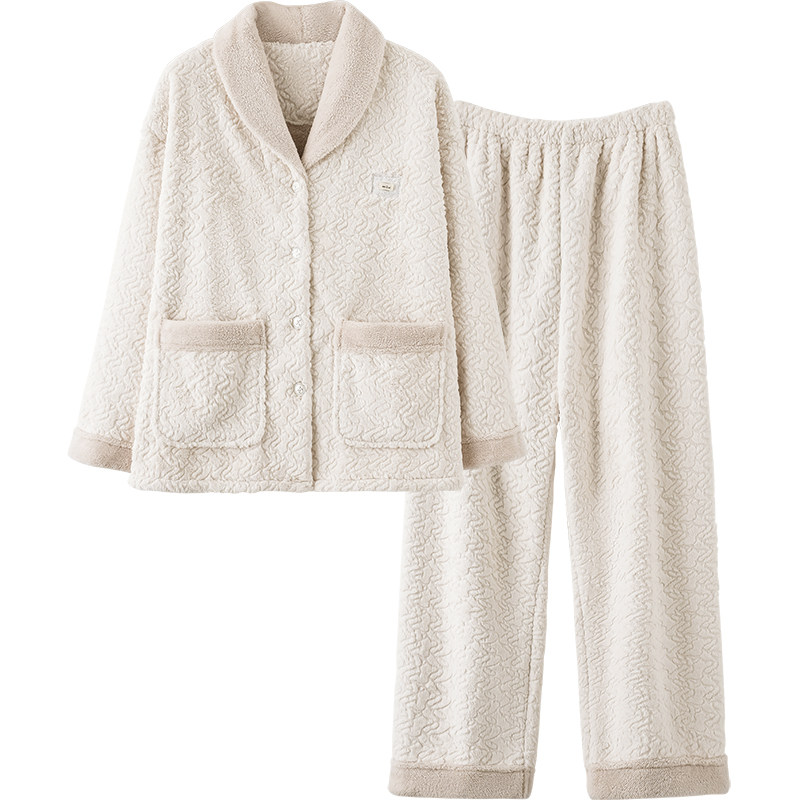 情侣仿羊羔绒睡衣女冬加厚珊瑚绒外穿家居服男套装 轩靓 抗静电
