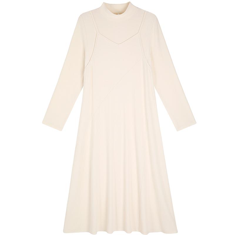 长袖 微胖大码 收腰裙子 格纹假两件连衣裙女2025秋冬新款 安妮不火