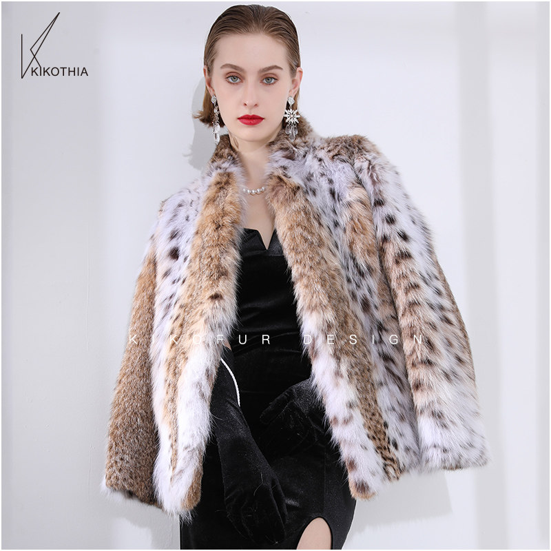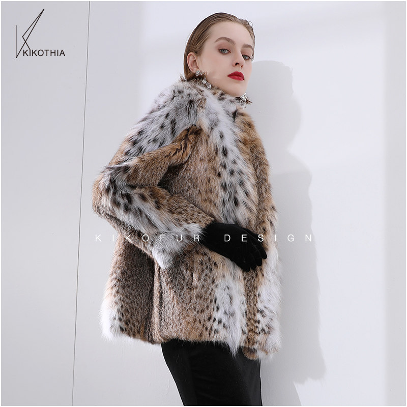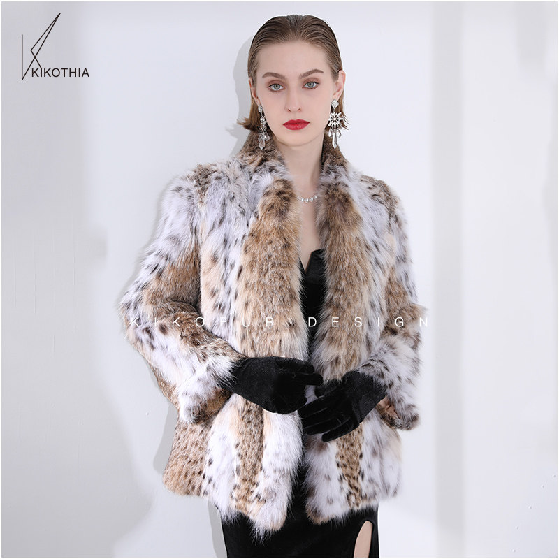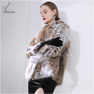 皮草女装 优雅浴袍领天然斑点美国进口半白短款 摩登女郎 咔咔皮草