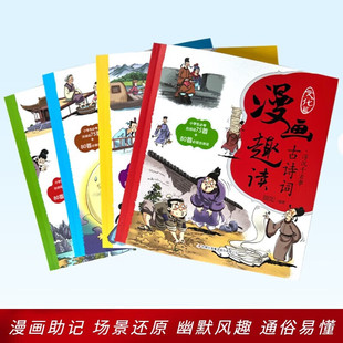 中国历史解读儿童小学生二三四年级课外阅读图书籍藏在地图里 漫画趣读古诗词全套4册 学生版 80首经典 古诗词 小学生必背古诗75