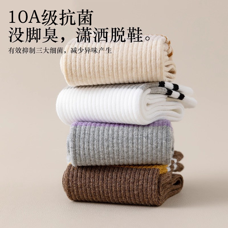 韩版 防臭吸汗休闲竖条纹堆堆月子袜纯糖果色 女士中筒长袜子春秋款