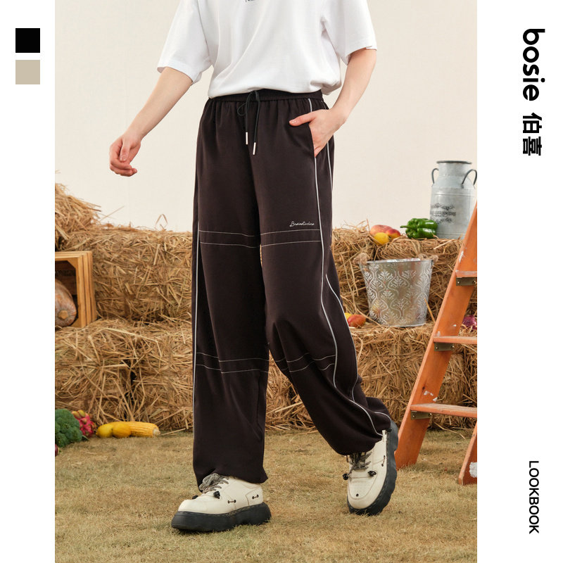 男情侣百搭宽松直筒压线休闲裤 束脚休闲卫裤 新款 bosie2025春夏季