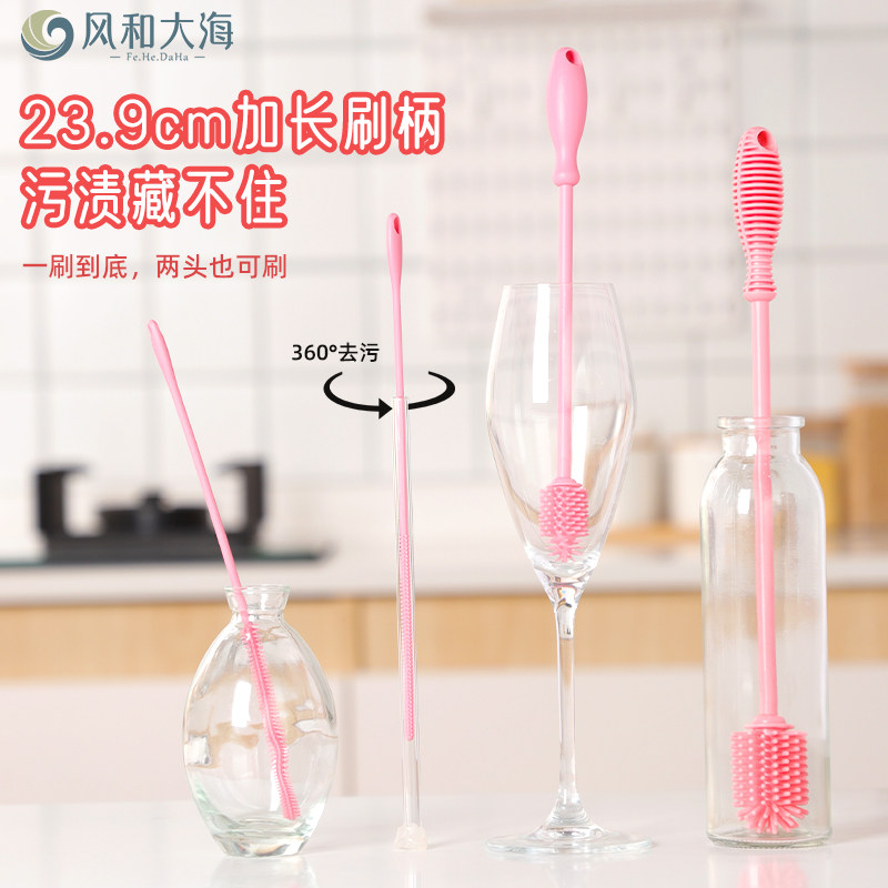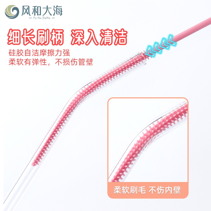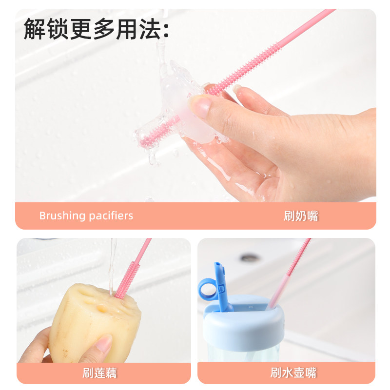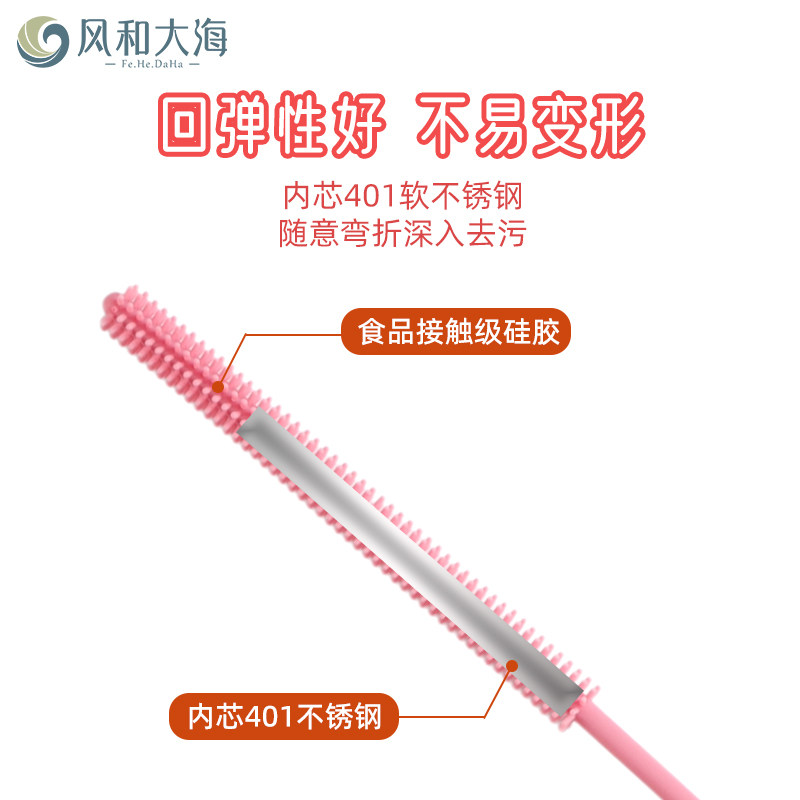 吸管刷杯刷奶瓶茶壶嘴缝隙清洁刷吸管硅胶细长小刷子套装 旋转长柄