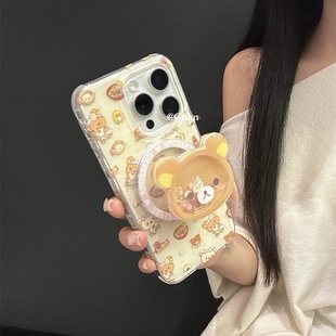 Note20 A34 S20 A23可爱S24FE A55软套S10 A73 s23手机壳S24ultra 轻松熊摇摇乐磁吸支架适用三星A54