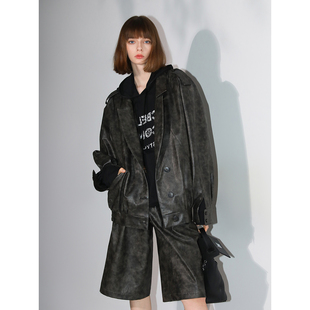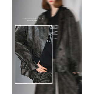 FORNINES复古中性翻领皮衣外套男女2025新款 秋冬PU夹克酷飒机车服