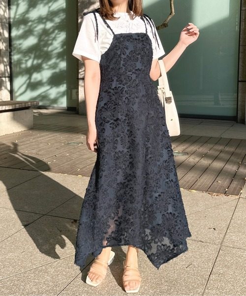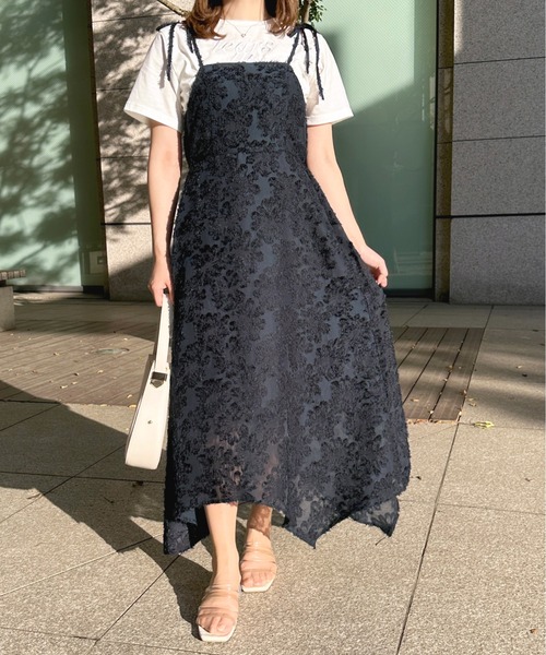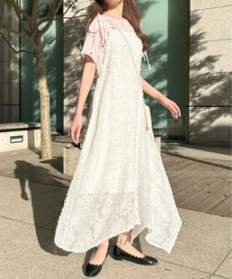 日单apres 新绒花面料不规则裙摆绑带吊带连衣裙 jour原单2023夏季