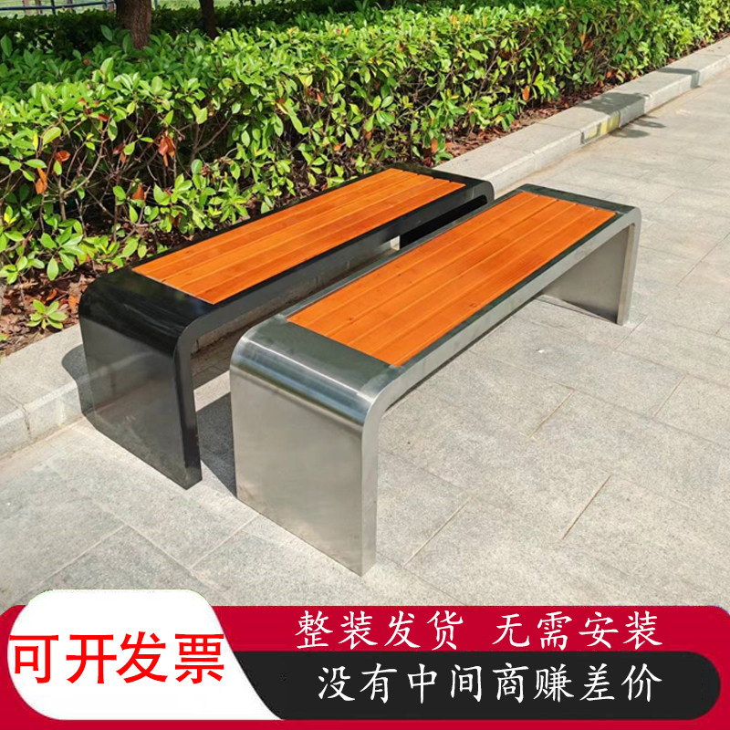 不锈钢公园椅户外长椅长凳庭院小区休闲长条座椅等候椅防腐木塑木