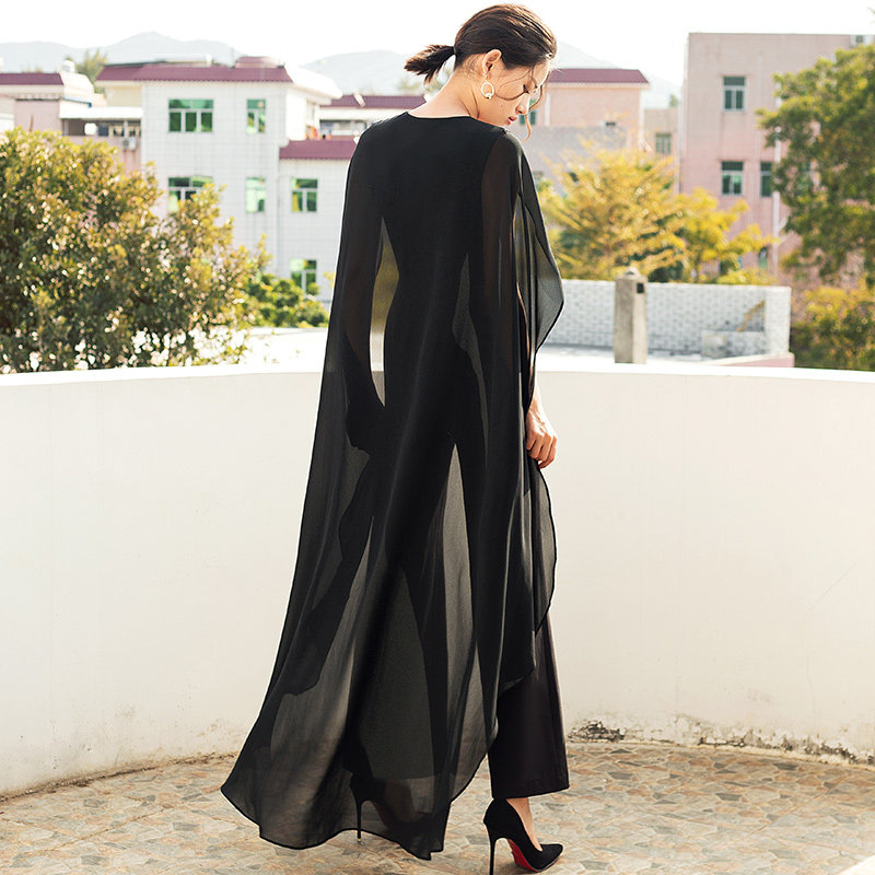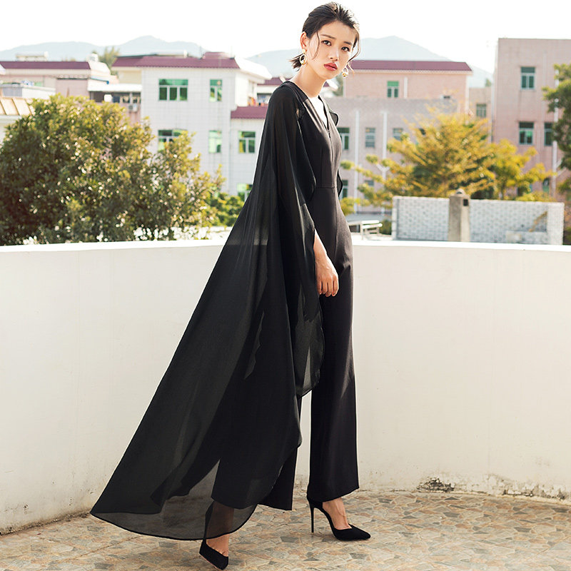 长裤 秋气质飘逸超仙原创小众黑色复古阔腿裤 子 女新款 春夏连体裤