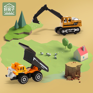 迷你合金工程车套装 3岁男孩过年礼物搅拌车挖掘机耐摔耐撞锻炼