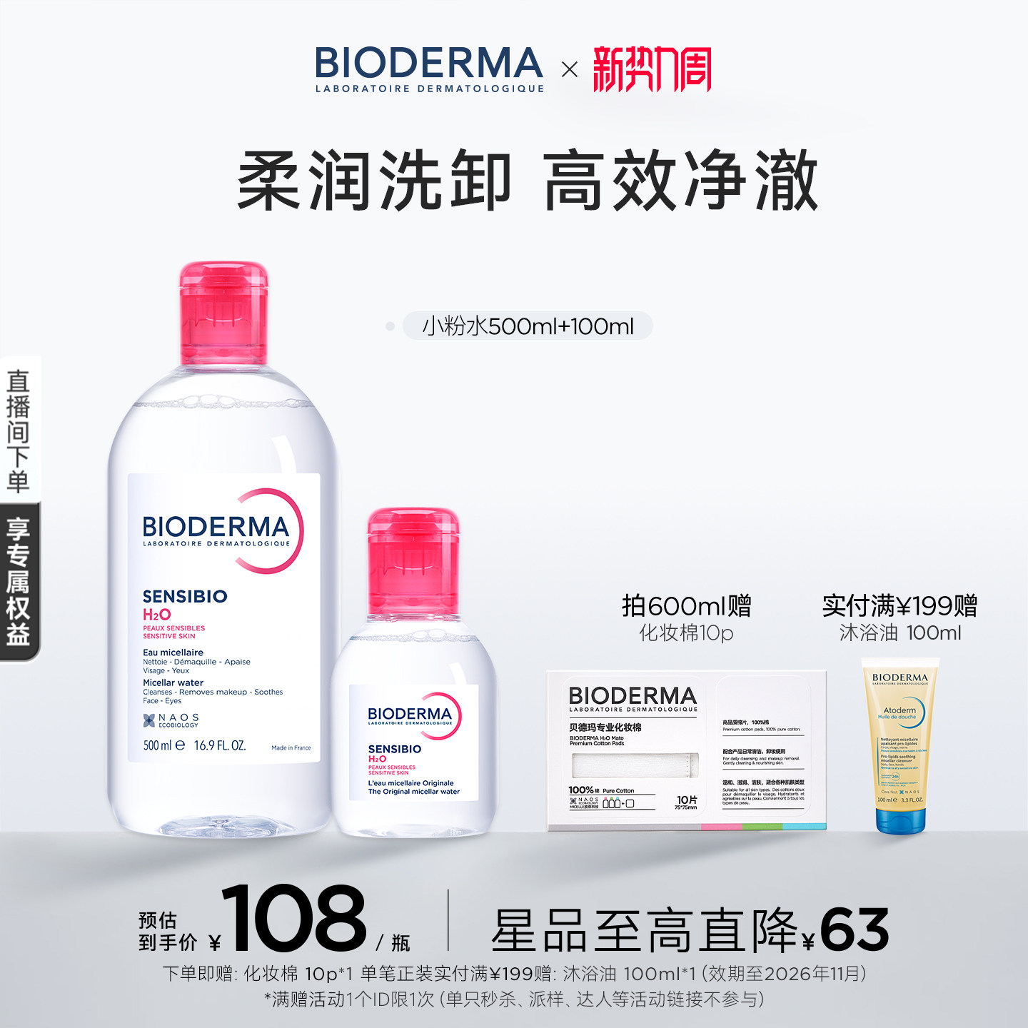 贝德玛粉水敏感肌洗卸春敏季 温和不伤肤净澈毛孔污垢成分精简安全