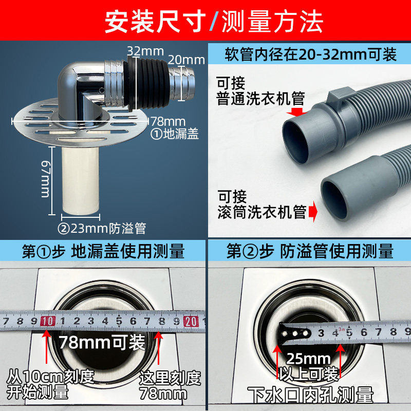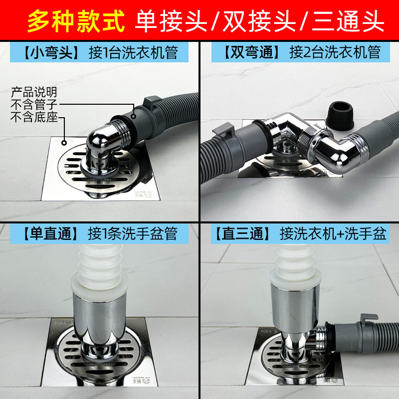 艾干净洗衣机地漏断层下水三通排卫生间管道地漏通用下水防臭神器