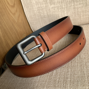 皮带男真皮铜针扣青年休闲中年商务裤 带男潮百搭棕色头层牛皮腰带