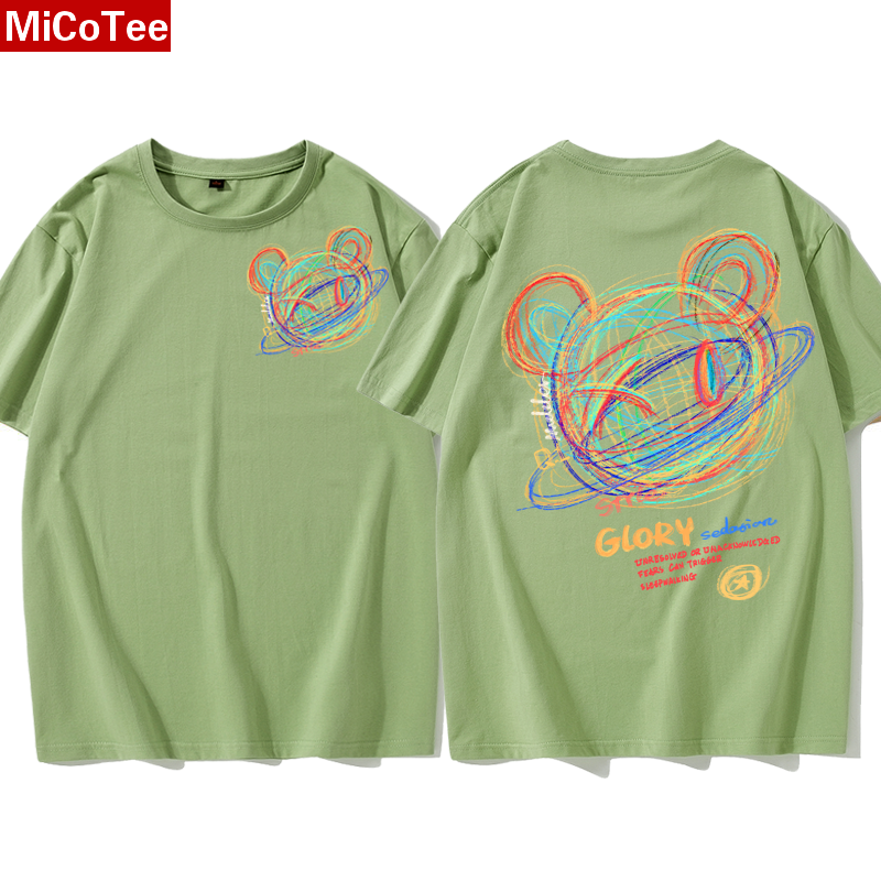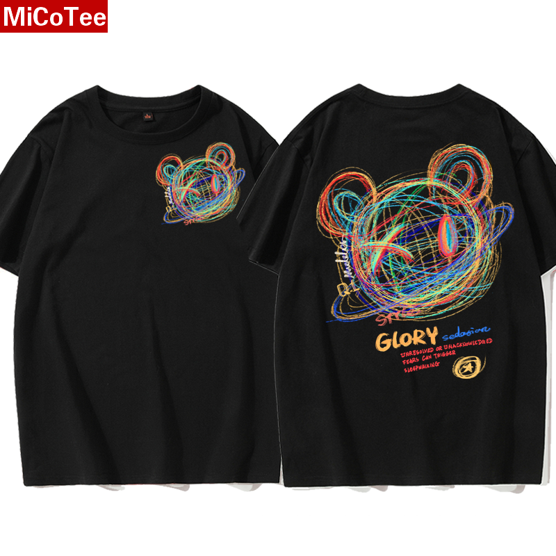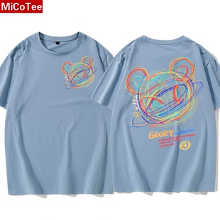 小恶魔鬼脸情侣装 T恤男女设计感重磅纯棉宽松体恤ins 潮牌印花短袖