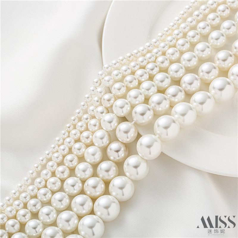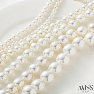 天然贝壳白珠穿孔圆珠镀白珍珠散珠手工串珠diy项链手链耳饰材料