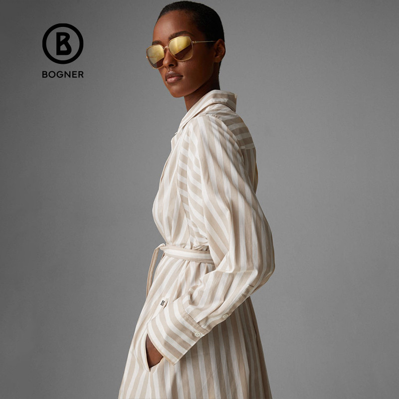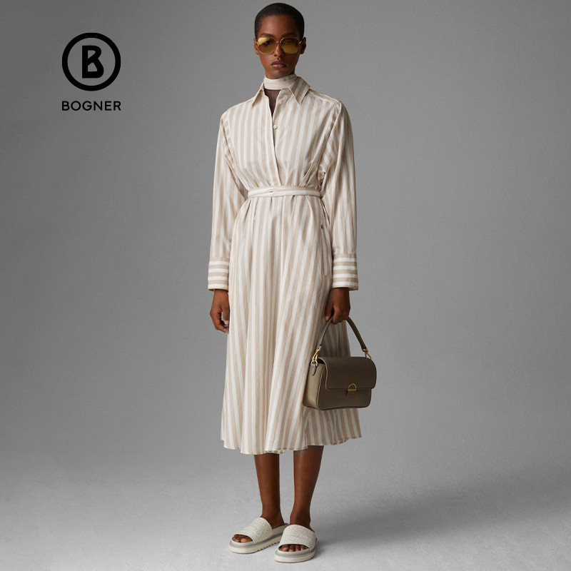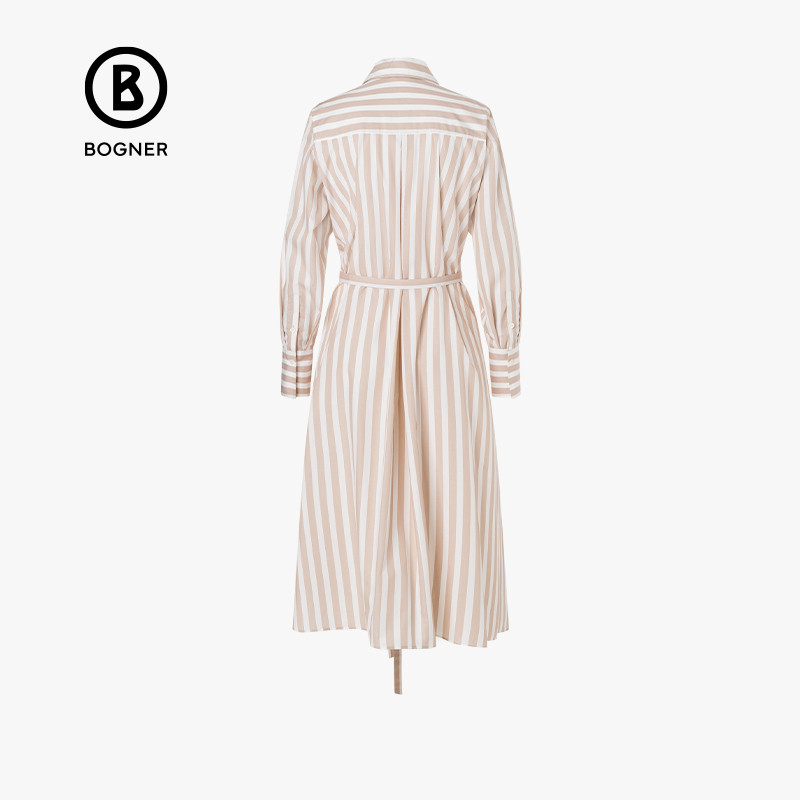 温柔雅致舒适百搭翻领条纹长袖 女装 连衣裙 时尚 BOGNER博格纳经典