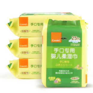 包邮 combi婴幼儿手口专用湿巾新生儿宝宝便携装 25抽湿纸巾