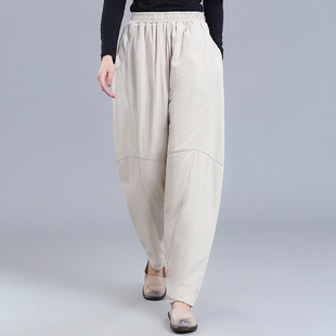 灯笼裤 亚麻高腰棉裤 宽松中式 外穿夹棉加厚棉麻萝卜裤 女冬2025新款