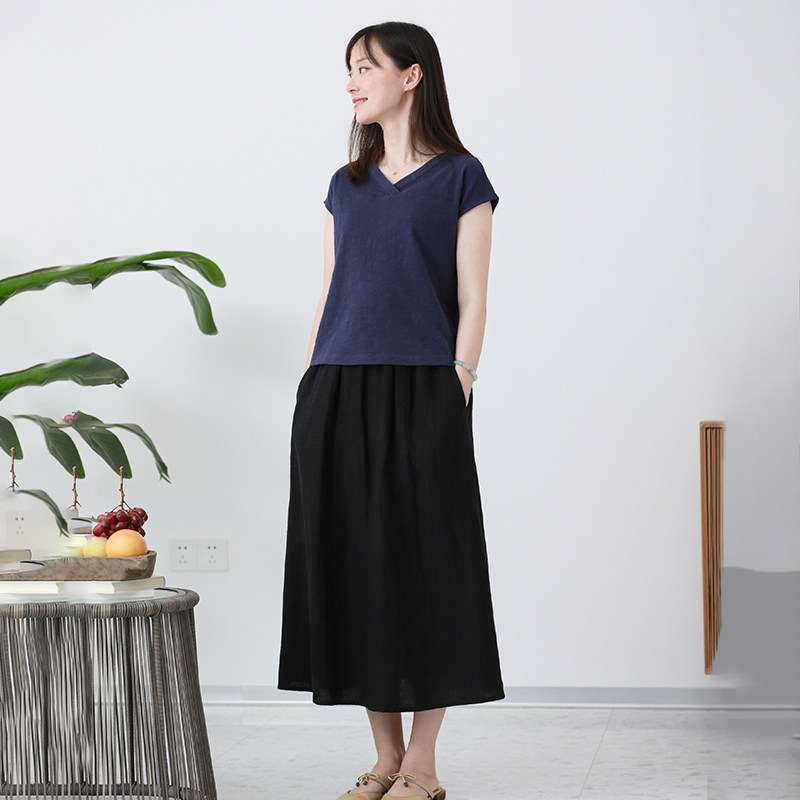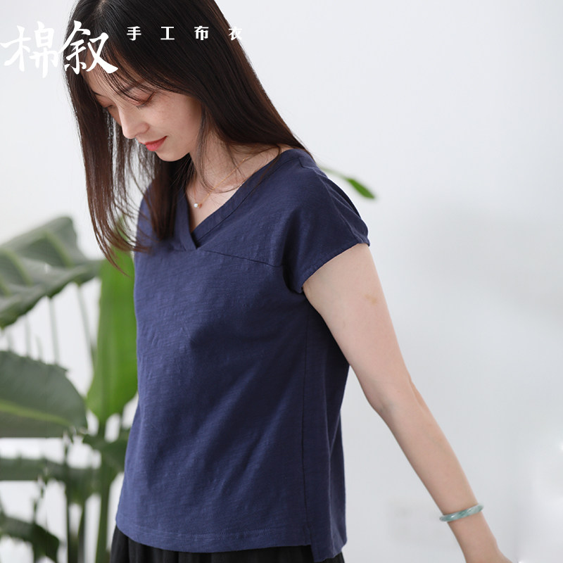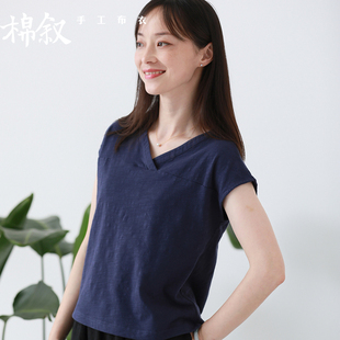 T恤女11262 纯棉休闲通勤上衣显瘦藏青色竹节棉短袖 告别价99