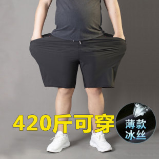 弹力冰丝短裤 子胖子运动五分裤 男夏季 速干加肥加大宽松裤 薄款 大码