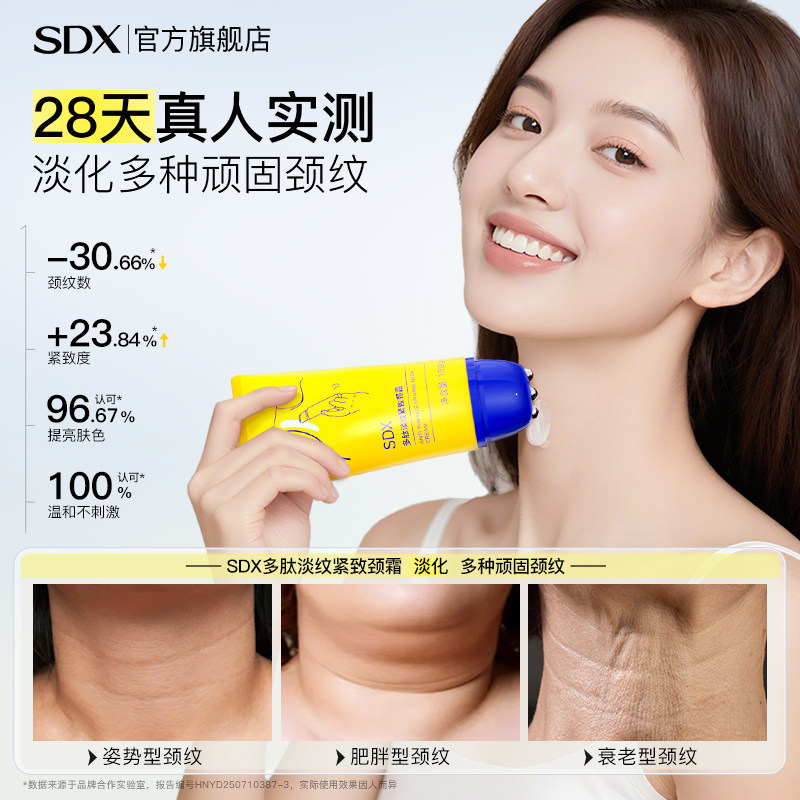 SDX多肽颈霜提拉紧致保湿 颈膜去颈纹颈霜按摩滚珠脖子淡化颈纹霜