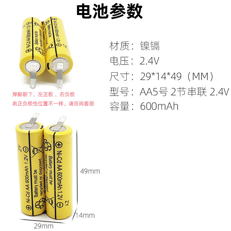 剃须刀刮胡充电电池5号 AA2.4V600mah理发器电蚊拍使用带焊脚