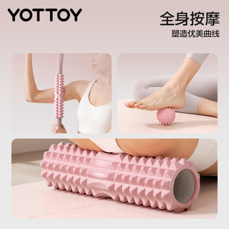 361度实心泡沫轴滚轴肌肉放松狼牙棒瑜伽舒展器健康架按摩轴女士