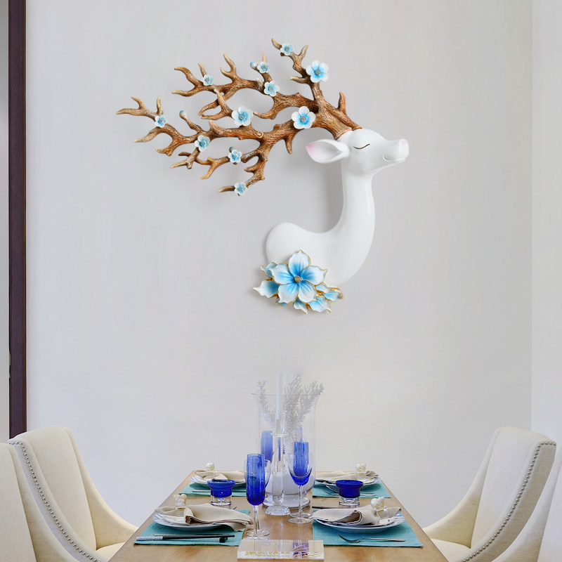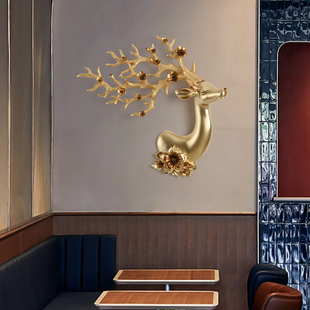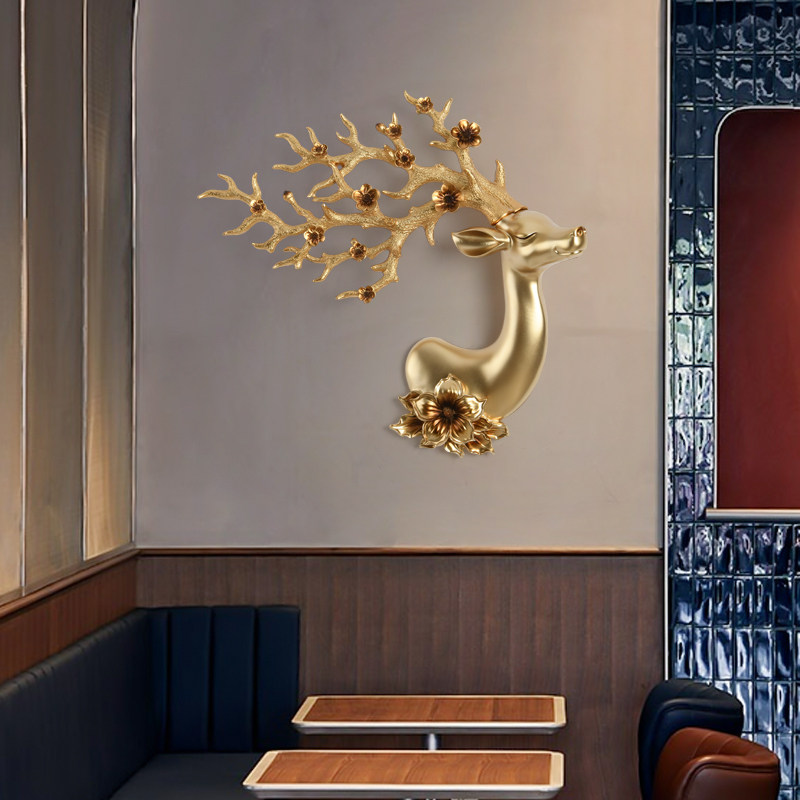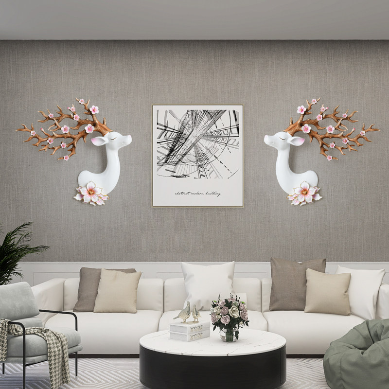 饰创意墙壁挂 饰玄关装 欧式 招财鹿头壁挂壁饰创意客厅电视背景墙装