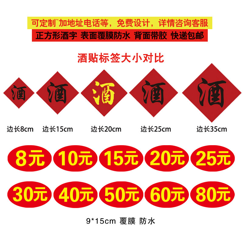 各类酒瓮缸桶酒价格贴不干胶 20元 酒坛酒字贴纸酒价格标签10元 15元