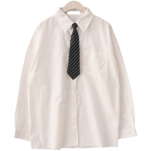 配条纹领带潮 宽松衬衫 胖mm200斤遮肉系上衣秋冬新款 复古港味长袖