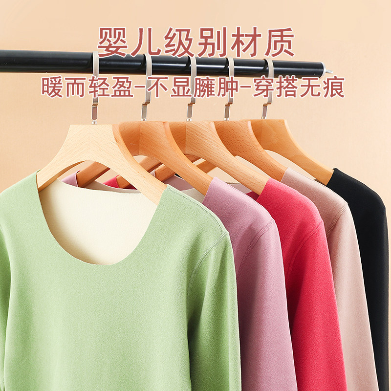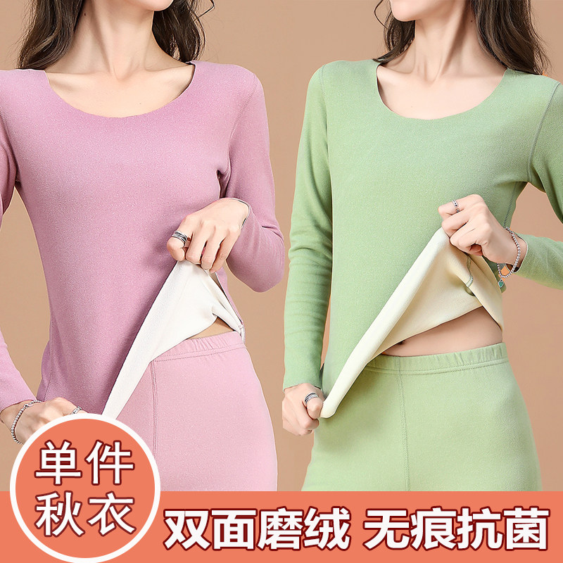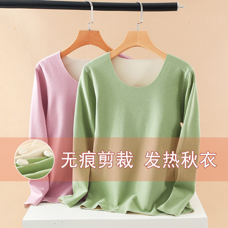 打底衫 加厚单件秋衣 女2025秋冬德绒无痕自发热保暖上衣宽松大码