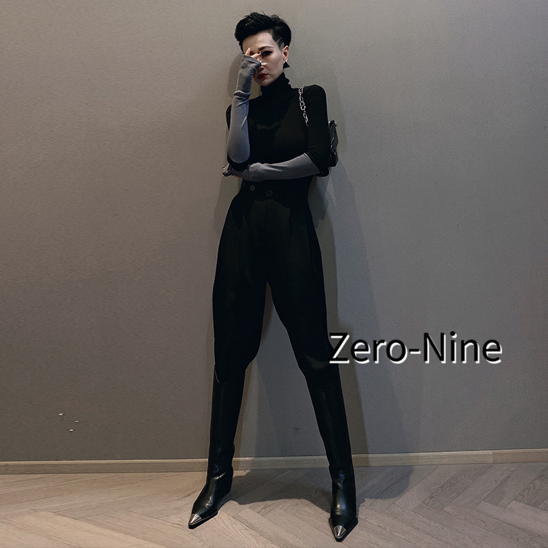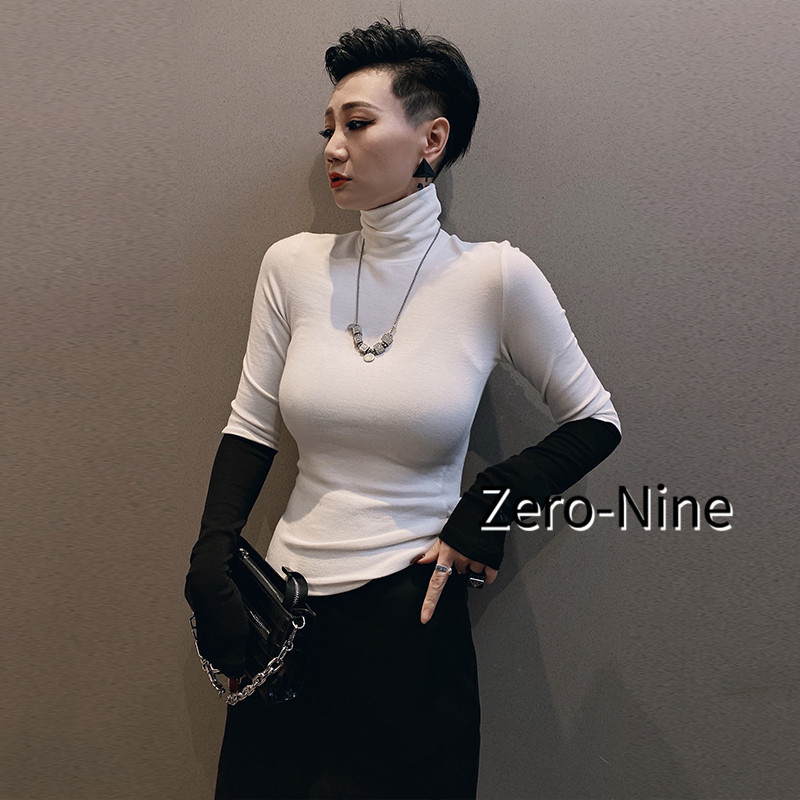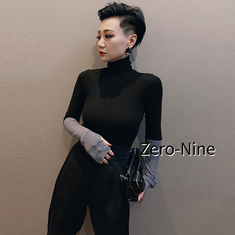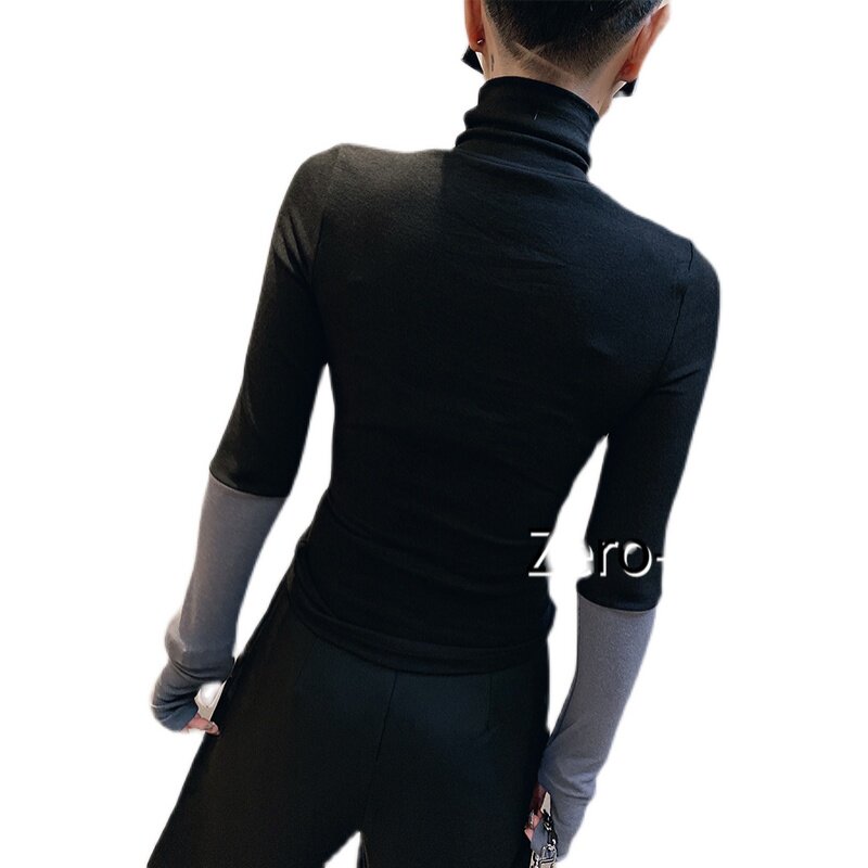 子高领打底衫 Dan 拼色袖 套拼接设计感针织衫 女 袖