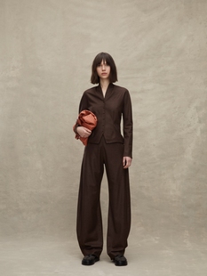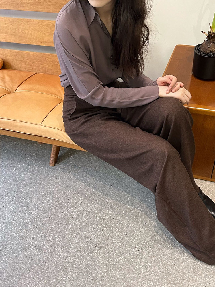 子潮 女秋冬加绒胖妹妹mm设计感高腰宽松显瘦休闲阔腿裤 黑色西装 裤