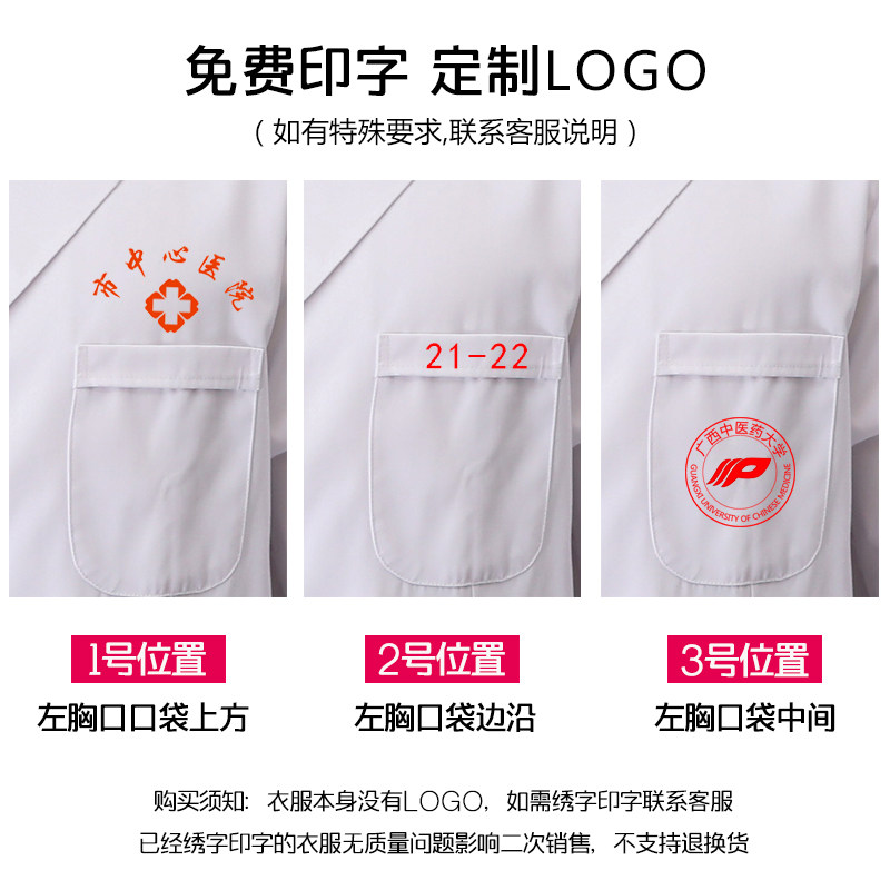 白大褂长袖 夏医师服医学生化学实验服药店护士工作服 男医生服短袖