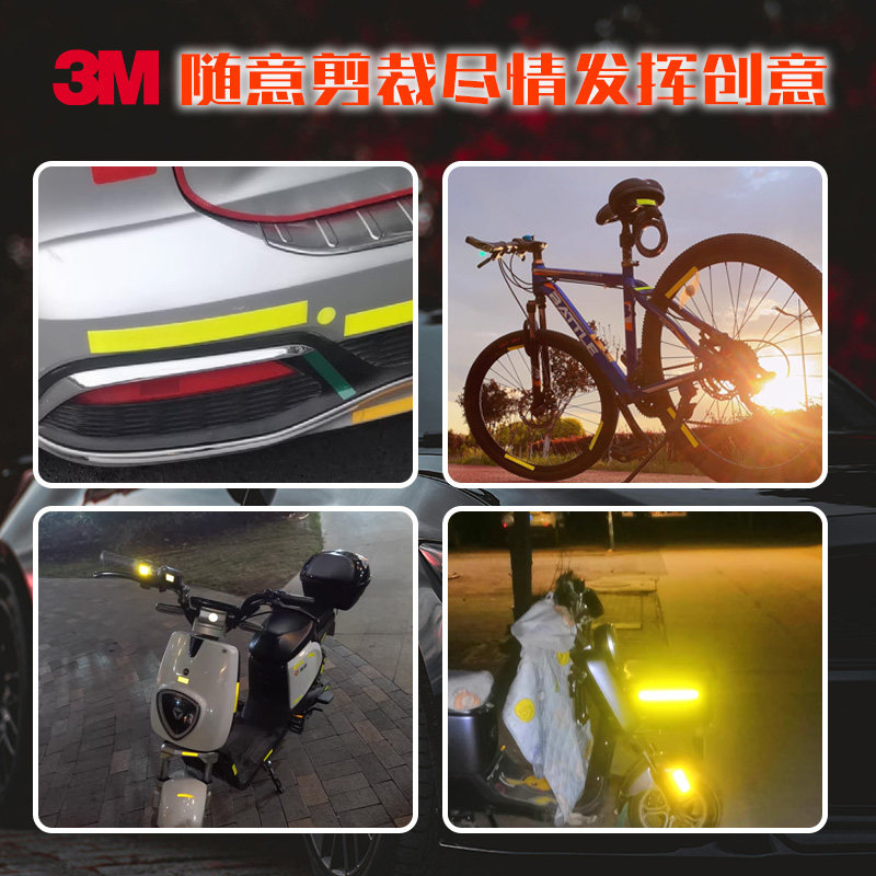 3m反光贴电动车头盔夜光汽车贴纸自行车电瓶摩托车身划痕个性 遮挡