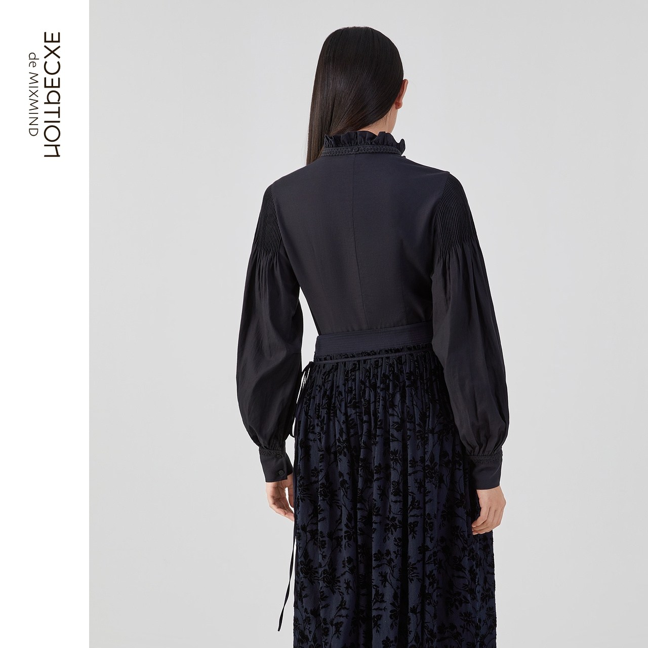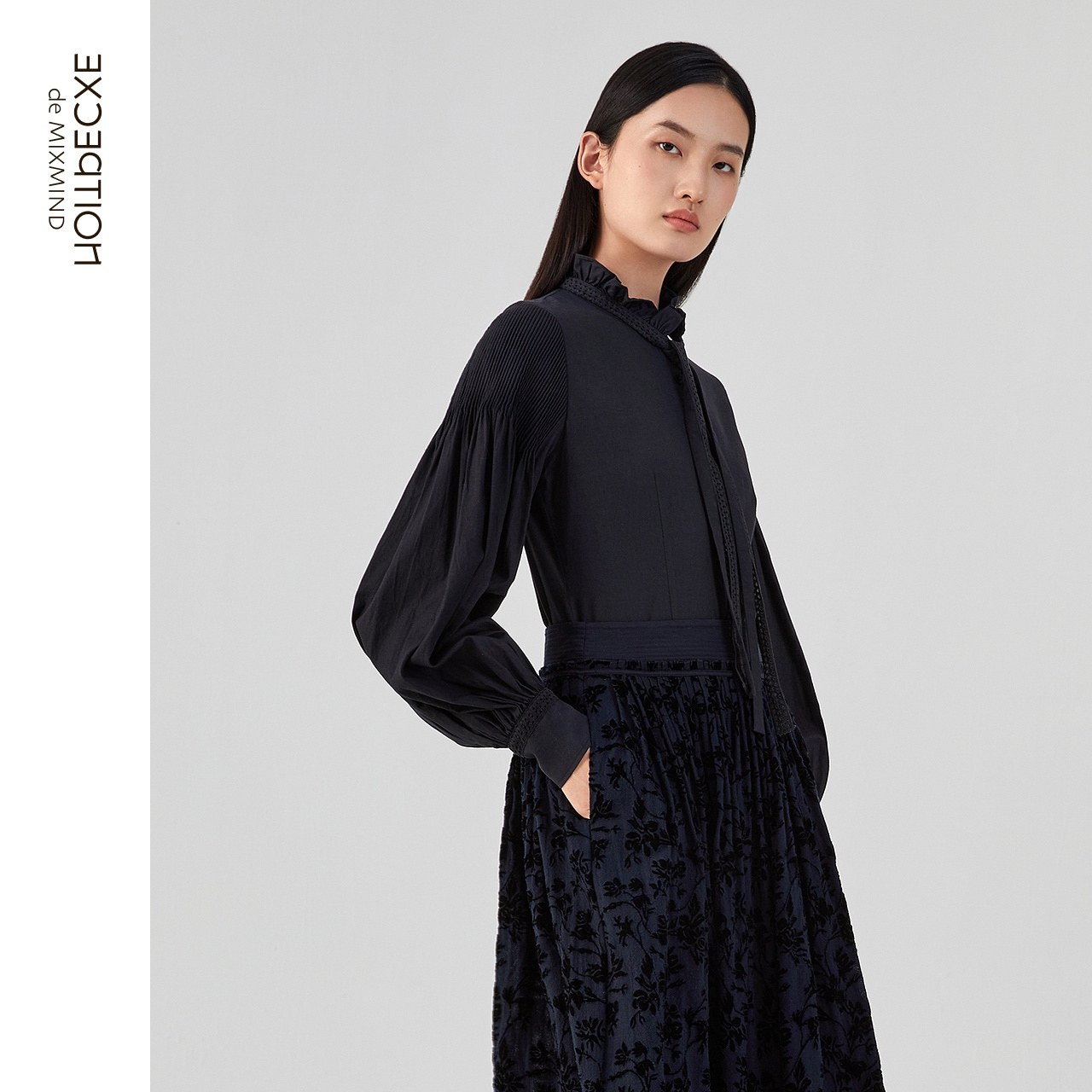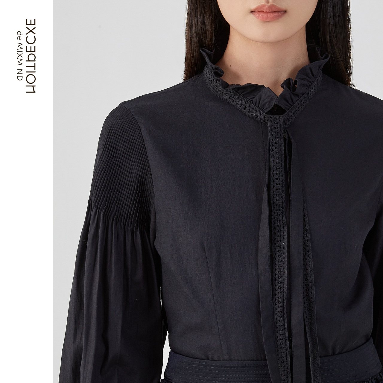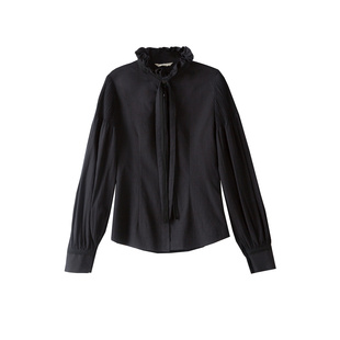 设计衬衫 spoii 优雅荷叶边萝卜袖 烟紫淡灰肌理感法式 象牙白