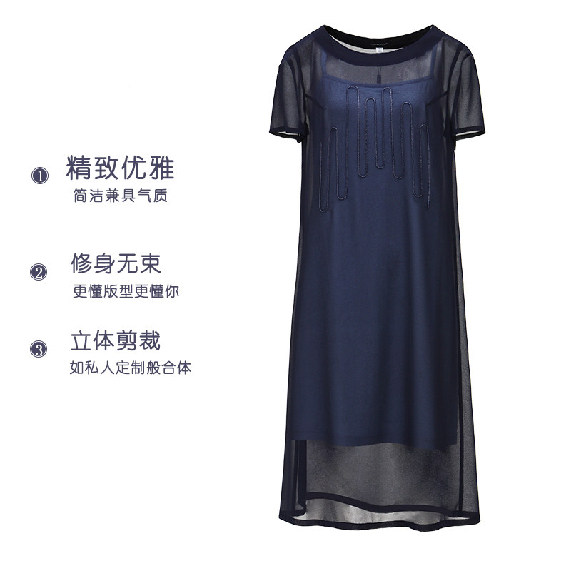 靓诺轻奢高级感两件套裙装 藏蓝绣花内配浅蓝吊带连衣裙女LL19291A