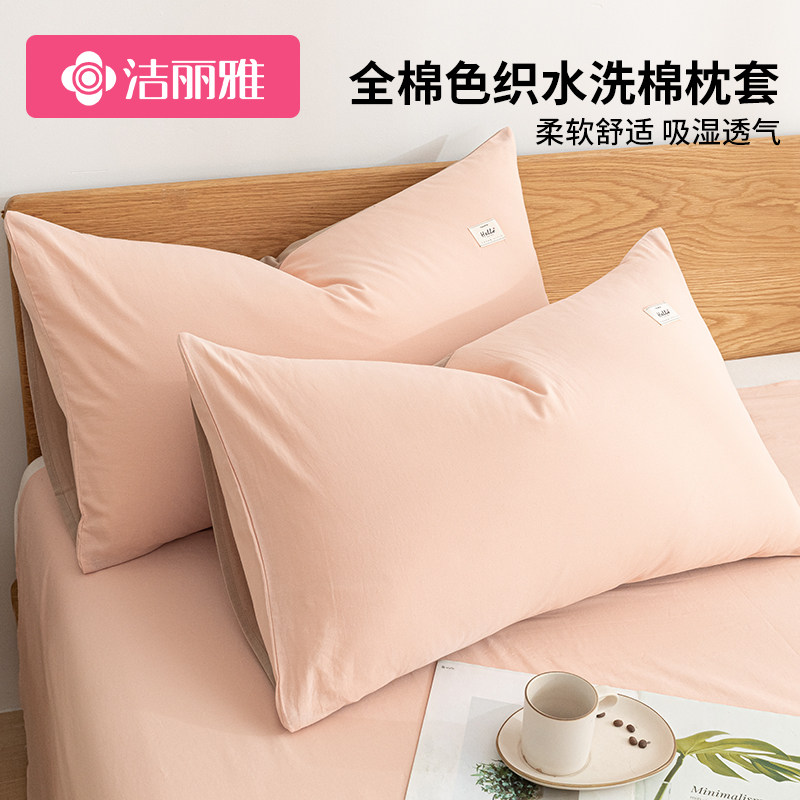 洁丽雅全棉水洗棉枕套一对装 学生宿舍纯棉枕罩48×74cm枕头套枕巾