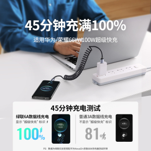 绿联弹簧伸缩数据线编织type c适用华为小米安卓手机tpyec超级快充HiCar车载投屏键盘航插6a5a摩托USB转充电