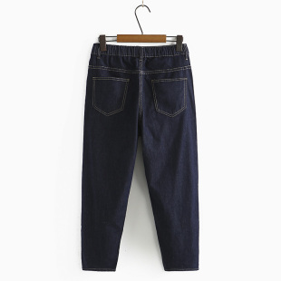 女胖mm夏季 高腰贴标哈伦裤 显瘦裤 200斤大码 ins潮 子薄款 弹力牛仔裤
