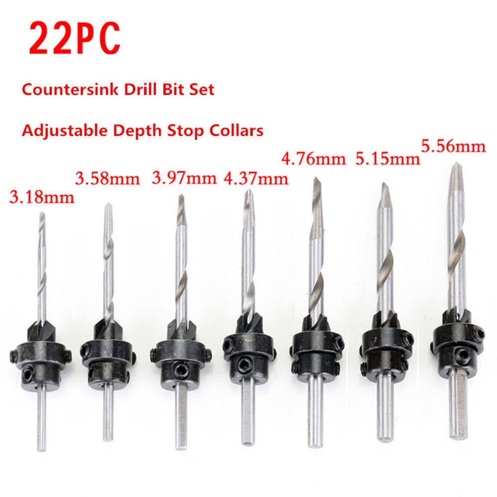 Bits Countersink Hex Tapered Key Collars Drill Stop 22pc Set