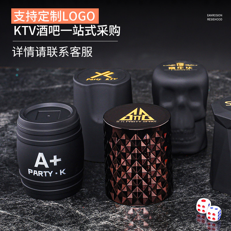 骰盅 手感磨砂色盅骰子酒吧KTV专用摇色子可定制logo 筛盅筛子套装