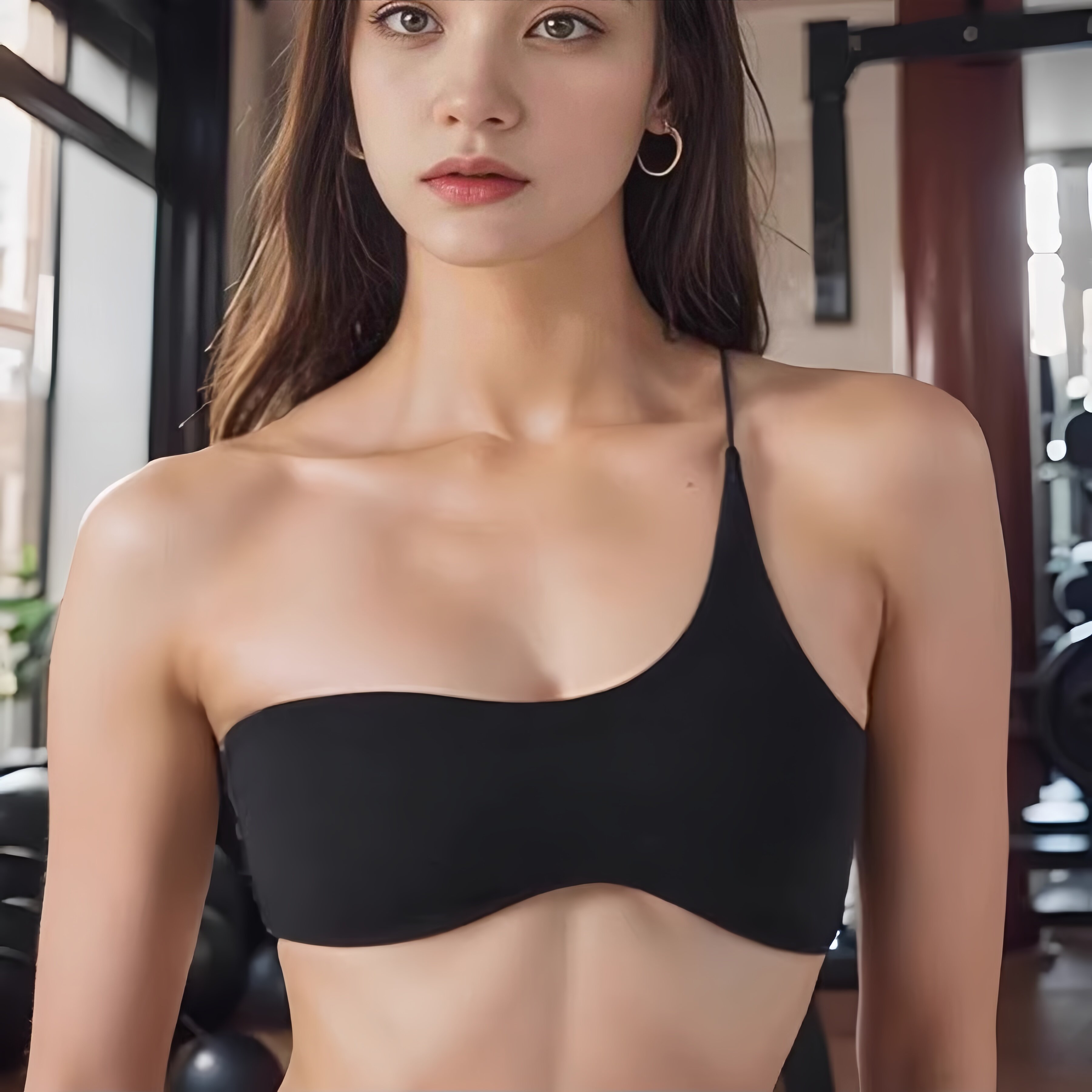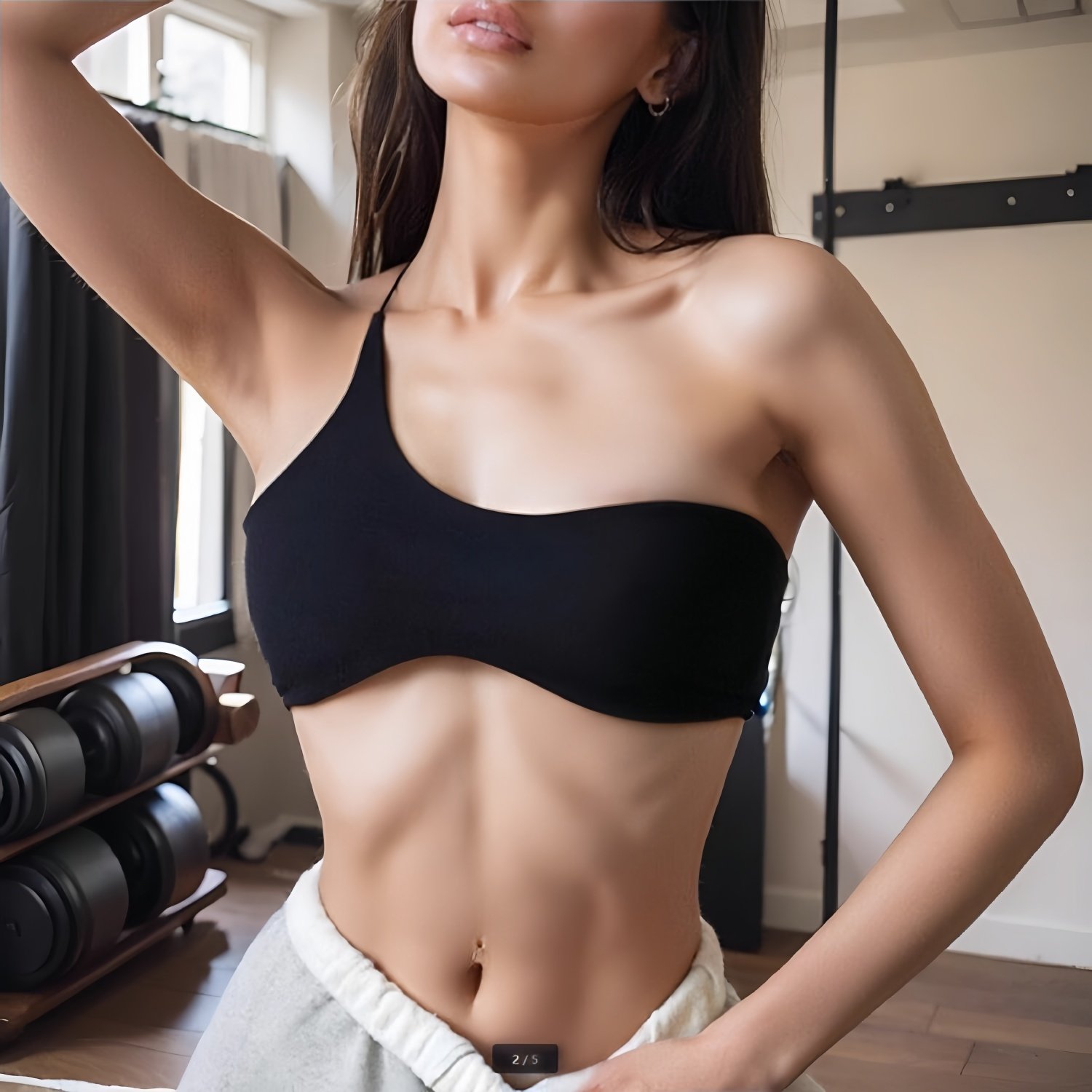 欧美瑜伽细肩带单肩运动文胸女速干户外跑步带胸垫健身内衣美背弹