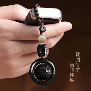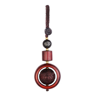紫檀木汽车钥匙扣挂件高档平安福男女高档车子通用朱砂转运珠绳链