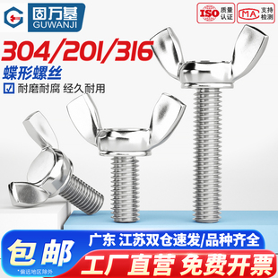 316羊角螺钉蝶型手拧螺丝钉 宝螺栓 304不锈钢蝶形螺丝 201蝴蝶元