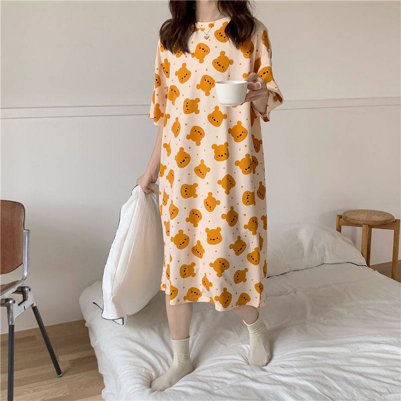 睡衣大码 送收纳袋夏季 短袖 家居服薄款 宽松卡通孕妇 睡裙女网红爆款